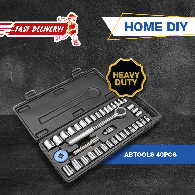 ABTOOL 40pcs Hand Tools Ratchet Socket Set Tool Box Spanner Set DIY Wrench Set
