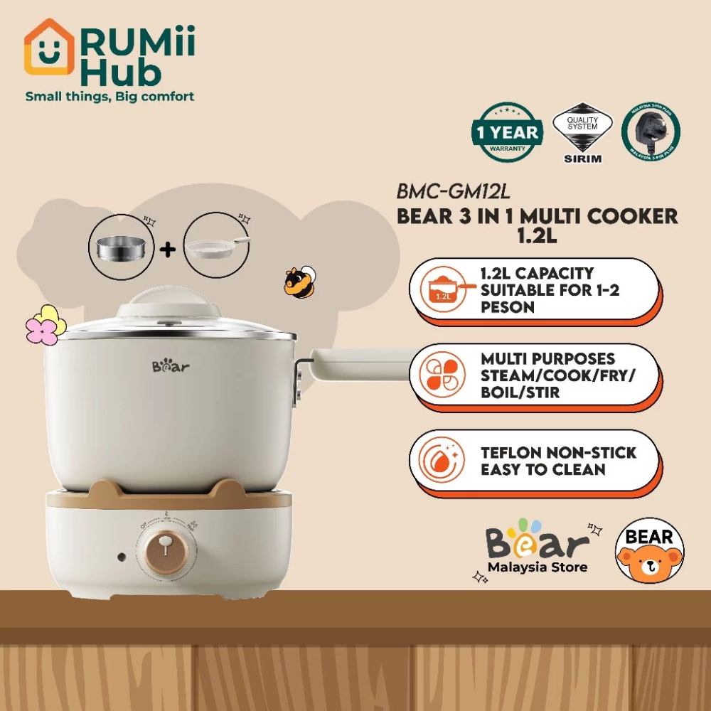 Bear 3 in 1 Electric Multi-Cooker 1.2L Teflon Coating Non-Stick Pot BMC-GM12L