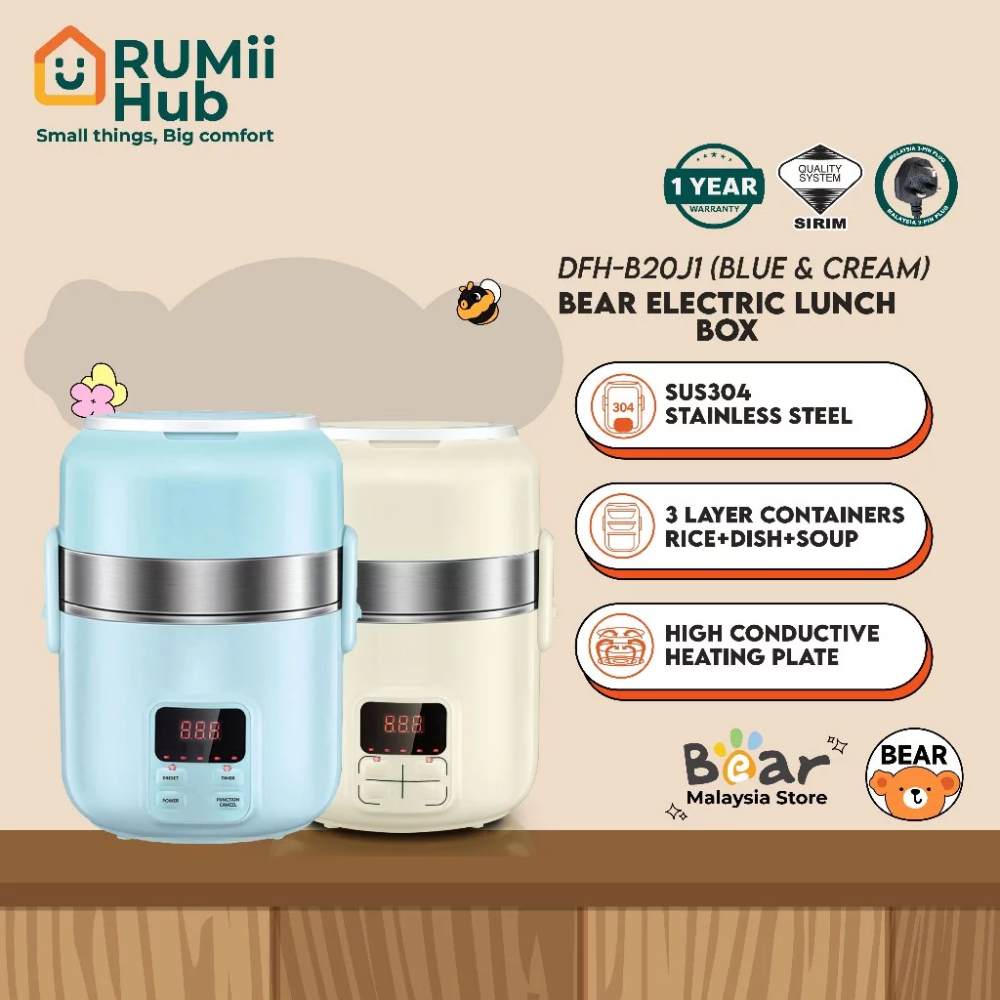 Bear Electric Lunch Box Portable Heating 3-Layers Stainless Multi Mini Rice Cooker (2L) DFH-B20J1