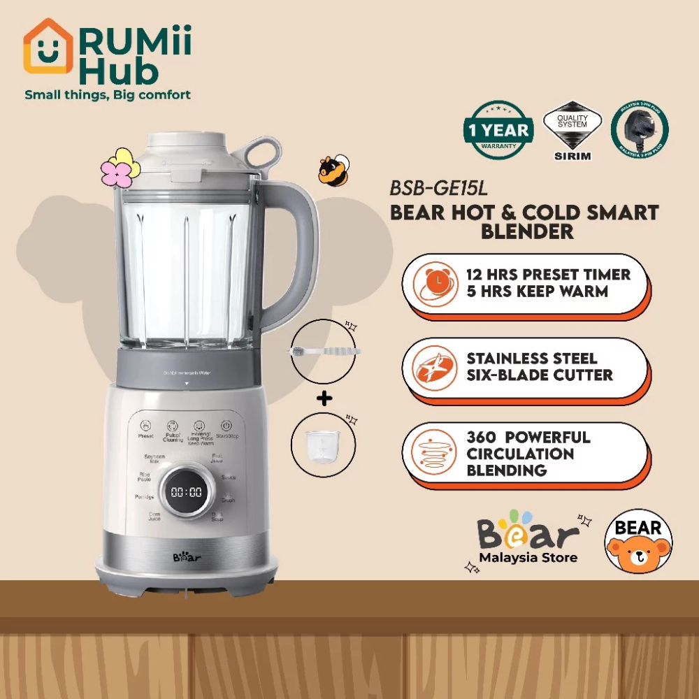 Bear Hot & Cold Smart Blender 1.5L OLED Knob Control 8 Menus BSB-GE15L