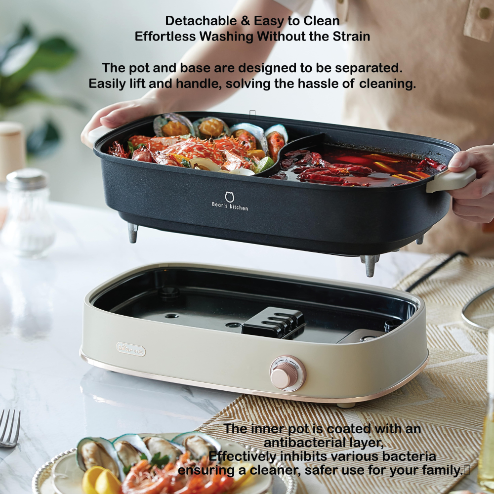 ✔️ Non-stick Dual-Compartment Pot for Easy Cleaning