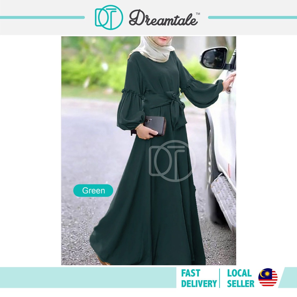 DREAMTALE REYAH Muslimah Wear Muslim Dress Cuff Sleeves Abaya Long Dress Women Maxi Dress Baju Raya 2022 Muslimah WCO056 [Delivery Included]