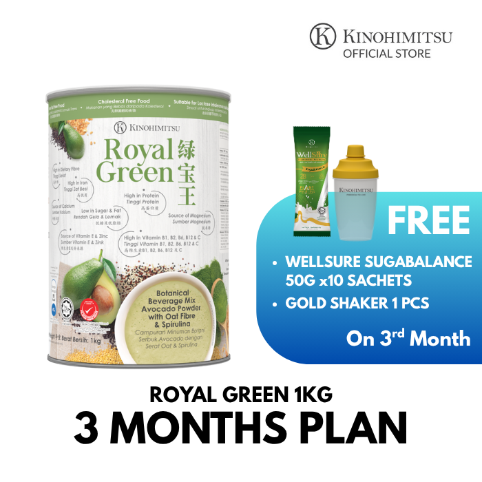 1 x Kinohimitsu Royal Green 1KG for 3 Months- Free Wellsure Sugabalance 10 Sachets + Gold Shaker on the 3rd Month
