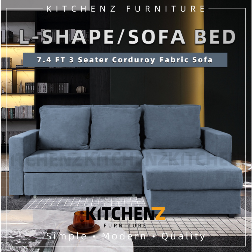 KitchenZ 3 Seater Sofa Set L Shape Sofa Multifunctional Sofa Bed Storage Box Corduroy Fabric Sofa Free Pillow - S2816