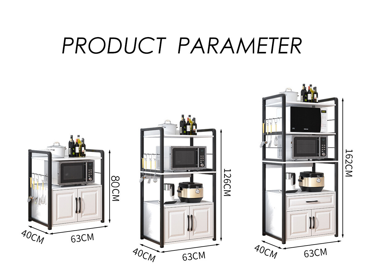 Product Details Of SOKANO ZWJ002402N379 Nordic Design Scandinavian Style Kitchen Rack Microwave Oven Shelf Multi-function Kitchen Storage Shelf Storage Rack With Door Rak Dapur Features : This is a multi-function microwave oven rack, which not only saves you more space but also can bear a lot of weight. A good microwave oven holder not only makes you feel more comfortable but also makes your kitchen cleaner. This product can put a lot of kitchen utensils, bear heavyweight, detailed edge design, not hurting the hand, easy to clean. Specifications : Sturdy and Durable Self-Assembly Suitable for storage & organized shelving for items High quality stainless steel Solid structure Easy to assemble High capacity and stability Multipurpose rack storage Adjustable height Size : 2 Tier : 63cm(L) x 40cm(W) x 80cm(H) 3 Tier : 63cm(L) x 40cm(W) x 126cm(H) 4 Tier : 63cm(L) x 40cm(W) x 162cm(H) ![]() ![]() ![]() ![]() ![]() ![]() ![]() ![]() |
