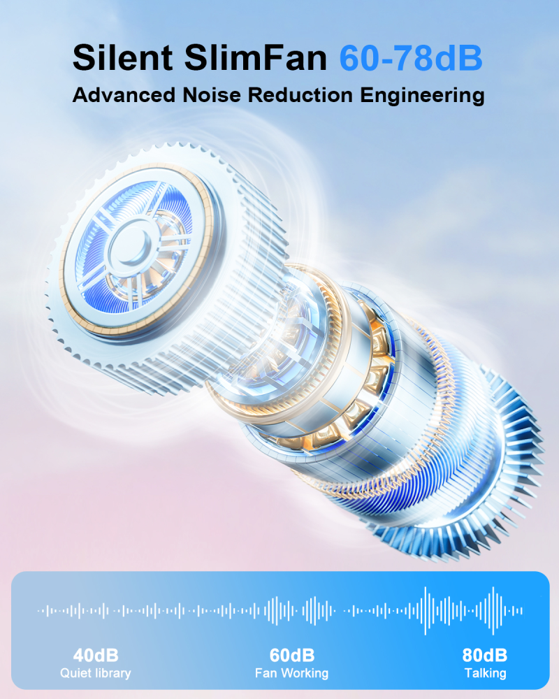 Small but mighty — this upgraded portable fan combines powerful airflow, smart speed control, and hands-free convenience into one sleek design.