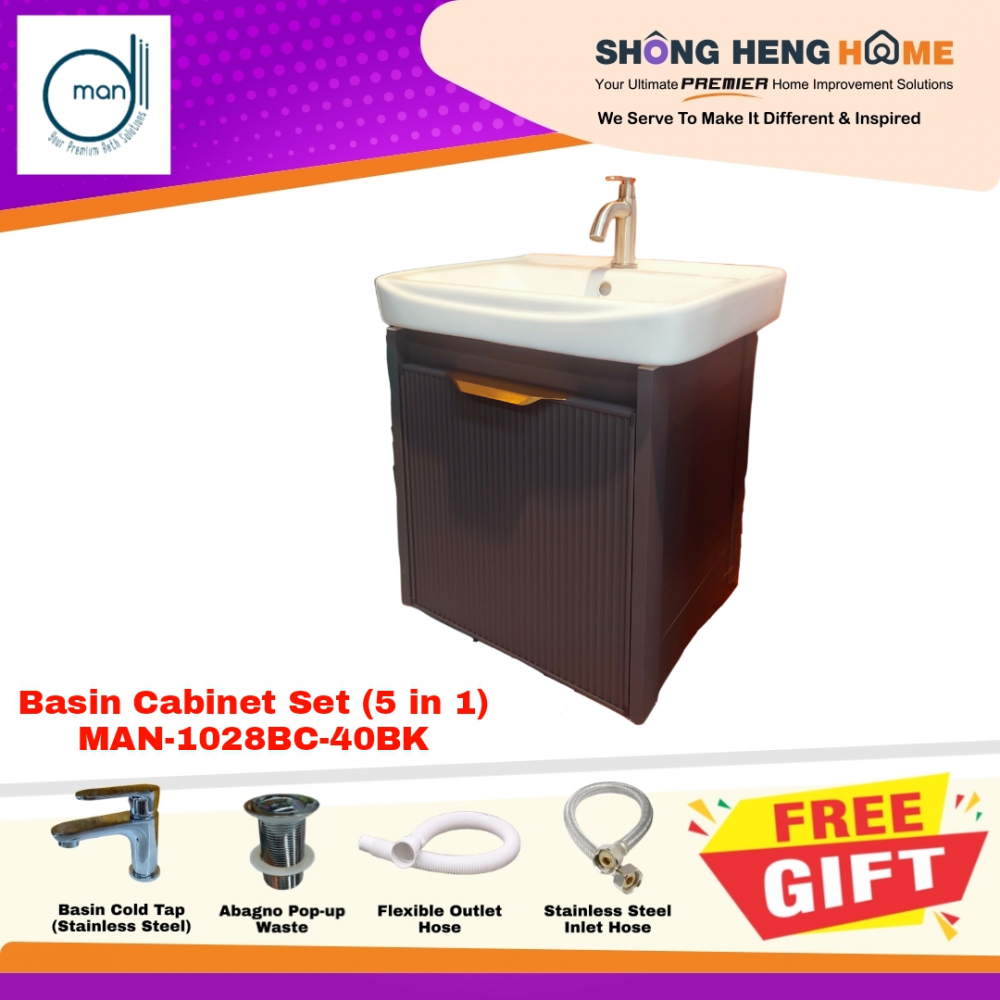 FREE SHIPPING [SET JIMAT] Basin Cabinet Set (5 in 1) MAN-1028BC-40BK + FREE GIFT + EXTRA BUBBLE WRAP