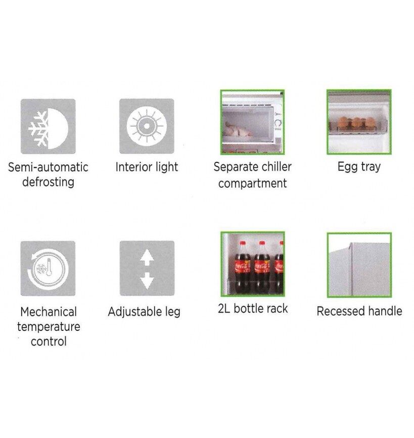 Product details of Midea 156L 1-Door Refrigerator Separate Chiller Compartment MS-196 (Silver)/ MS-196B (Black):