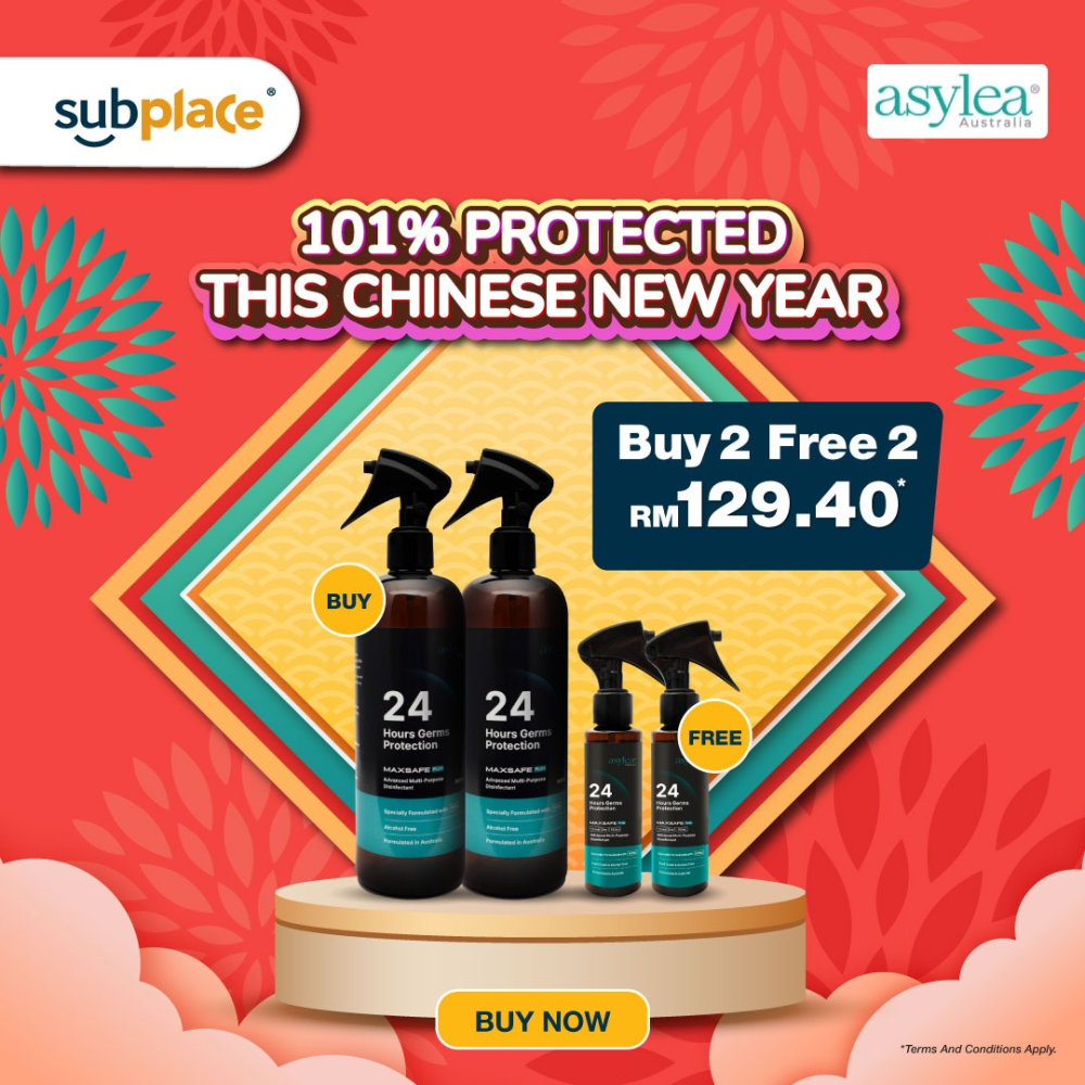 Asylea MaxSafe Plus is most powerful multi-purpose disinfectant that is provided 24 hours protection, non alcohol, food grade ingredient, friendly to children, pregnant mothers, skin sensitive person and even pets.