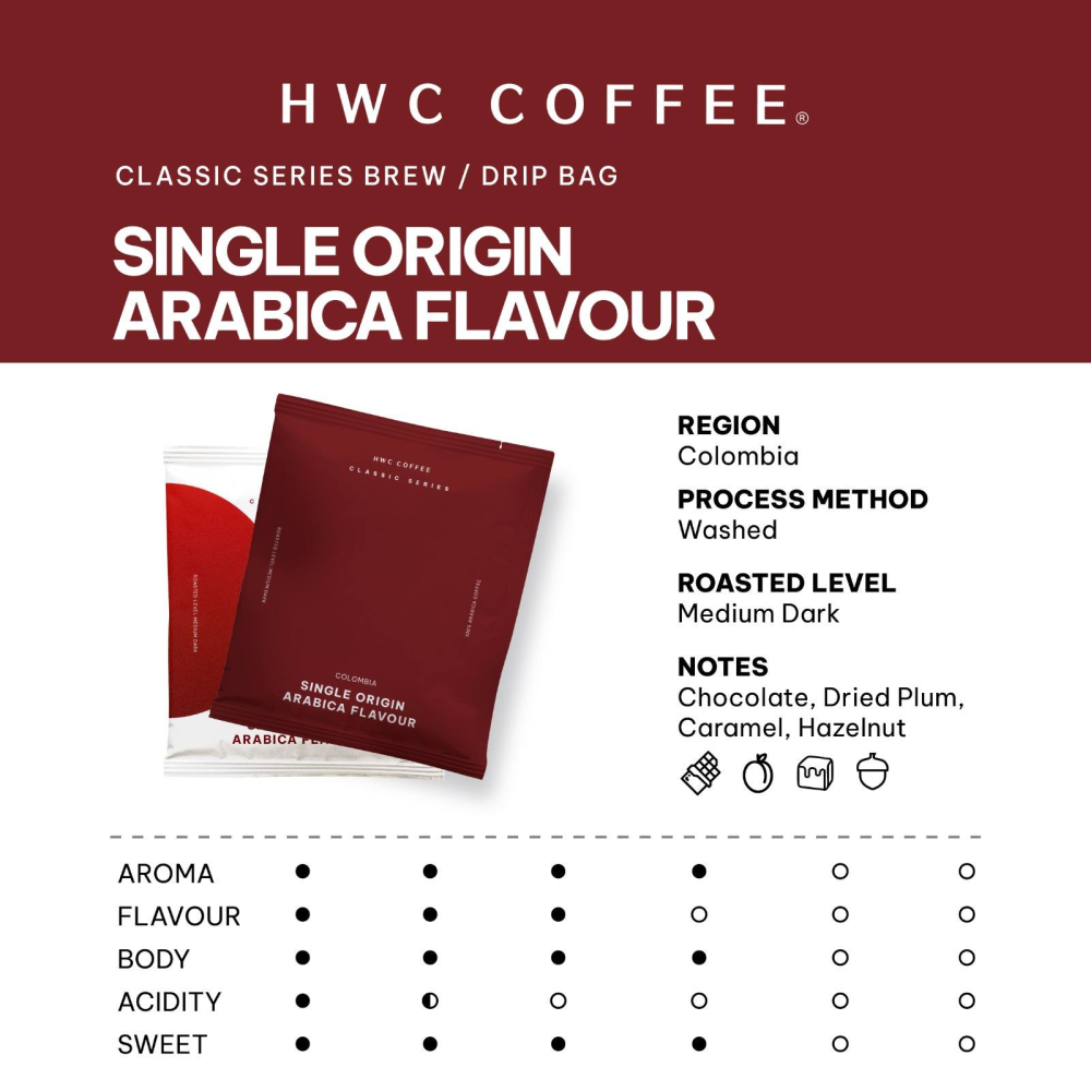 HWC Classic Brew Bag Coffee Gift Box [ Single Origin Arabica ] is a selection of individually packaged single serving coffee packets comes with total 10's Sachets.