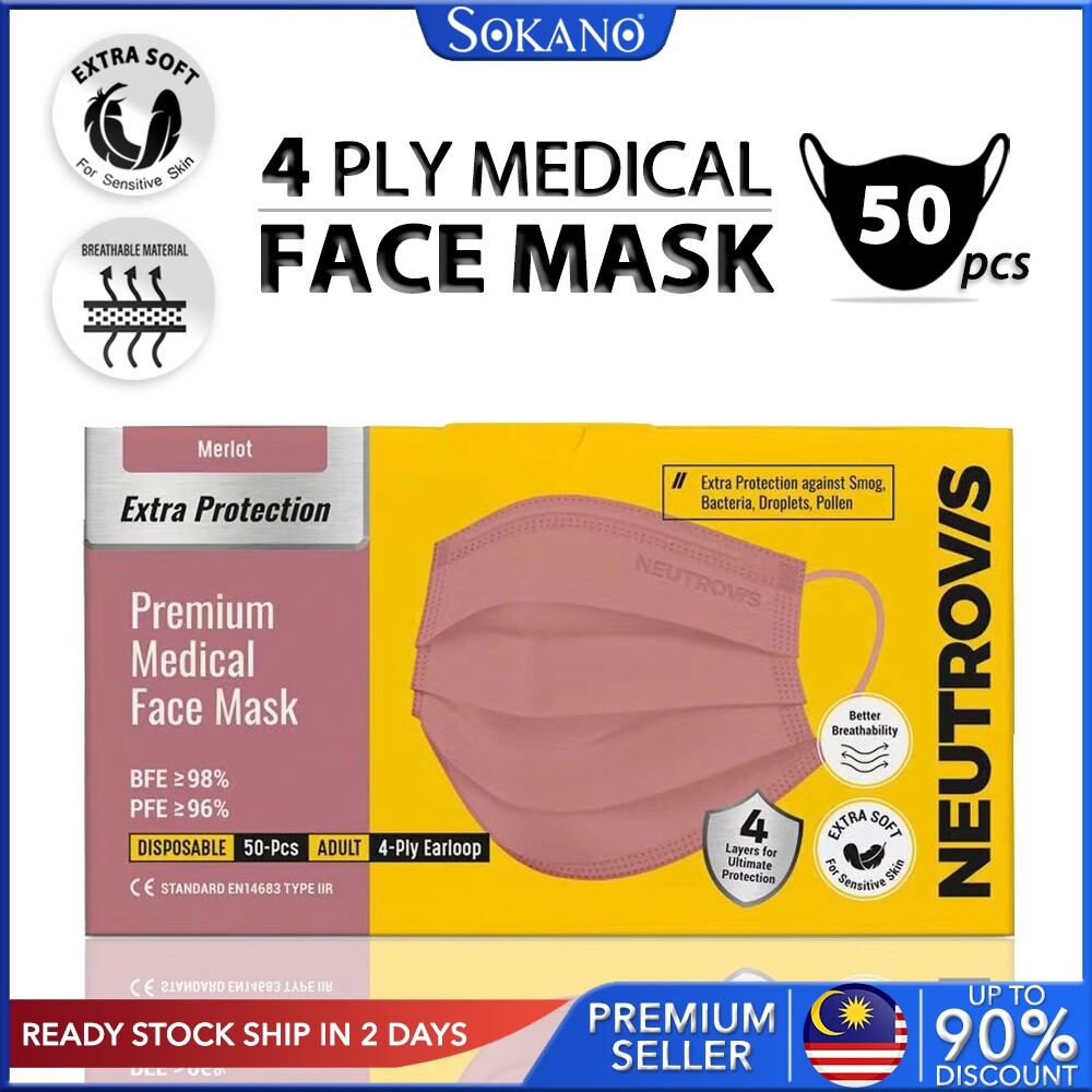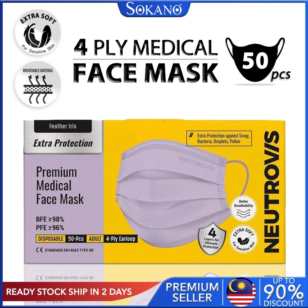 Product Details Of Neutrovis 4Ply Premium Type IIR Extra Protection Premium Medical 4 Ply Face Mask Topeng Muka Pelitup Muka 4 Lapis